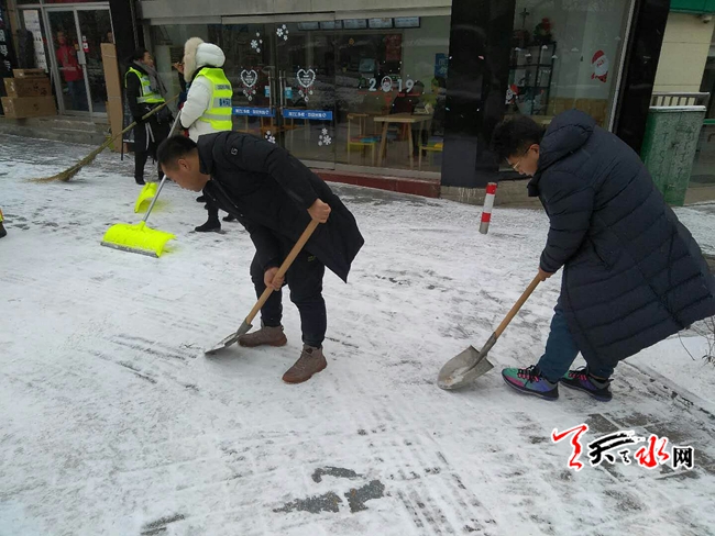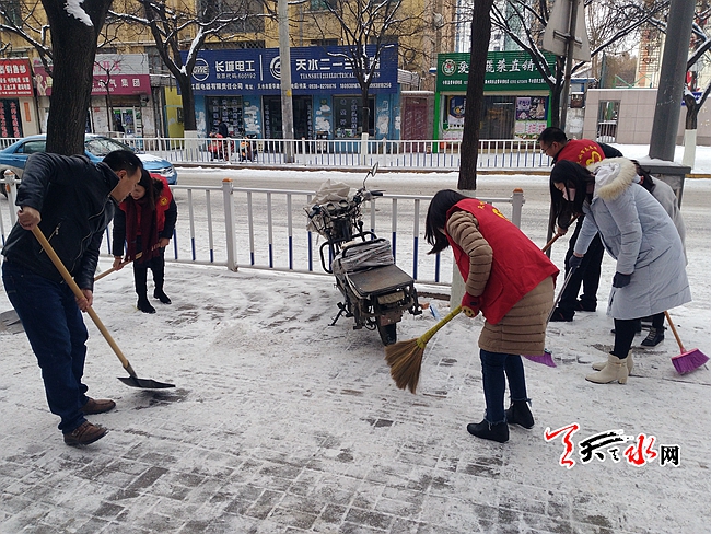 天天天水网讯 为保障辖区交通畅通,减少积雪对居民带来的影响,12月28日上午,大城街道共和巷社区积极联合辖区单位及居民志愿者,共同开展了上路段扫雪的志愿义务活动。