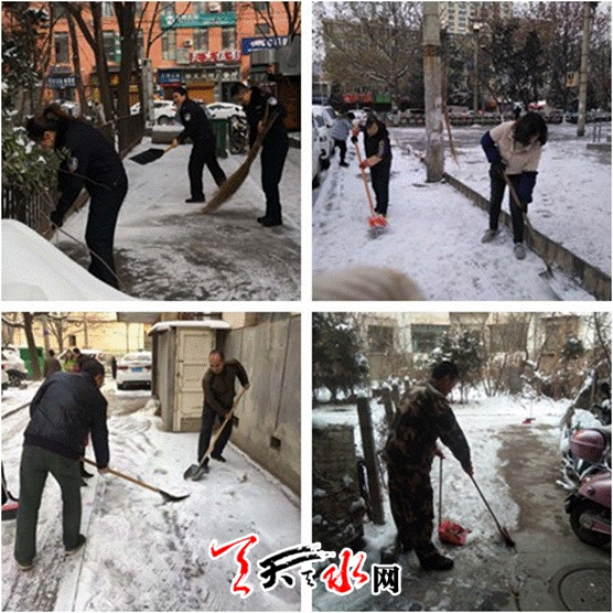 天天天水网讯(通讯员邵小勇)忽如一夜春风来,千树万树梨花开。冬日的瑞雪给天水阳历新年带来了吉祥如意,街头巷尾的美丽雪景给古城天水充满了冬日的气息,孩子们在雪地里开心地玩耍,但是道路积雪也对群众的出行安全造成了一定的影响并产生一定的安全隐患。对此,2018年12月28日七里墩街道罗一社区组织辖区在职党员志愿者对所包抓的小区路段集中开展清扫冰雪活动。