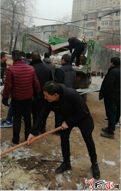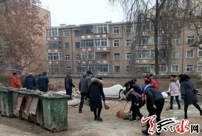天天天水网讯【通讯员 董强强】1月4日上午,秦州区东十里社区联系秦州区环卫处与长低厂物业组织居民共同对长低厂家属院外围的生活垃圾进行了集中清理。