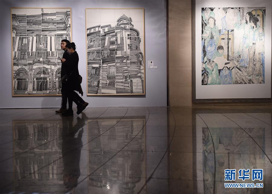 观众在于北京举行的“中国艺术新视界2018”——国家艺术基金青年艺术创作人才(美术、书法、摄影、工艺美术)滚动资助作品巡展上参观(2018年3月12日摄)。 新华社记者 罗晓光 摄