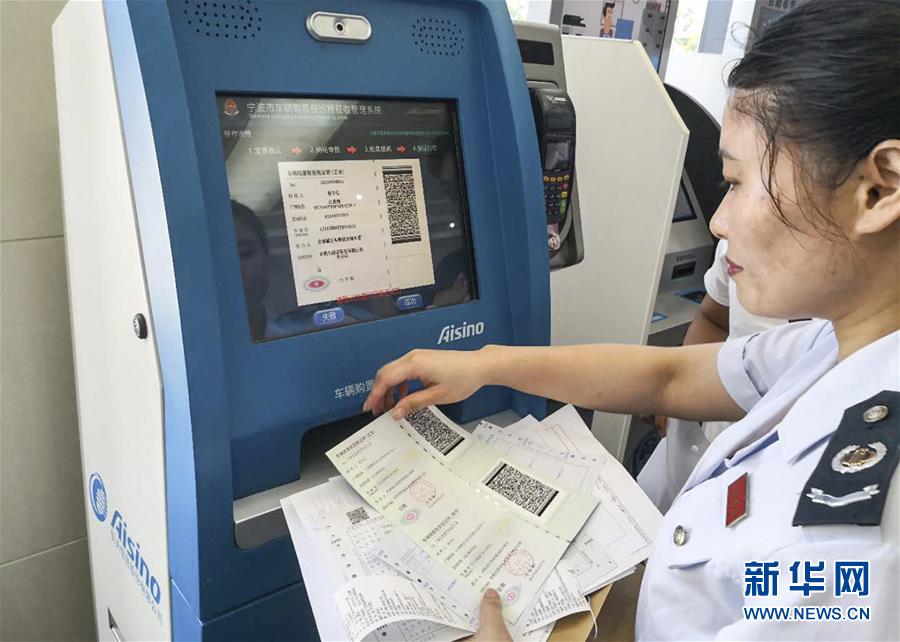 工作人员在浙江余姚市公安局交通警察大队车辆管理所操作车辆购置税远程征收管理系统(2018年6月27日摄)。 公安部2018年6月28日公布简捷快办、网上通办、就近可办等20项交通管理“放管服”改革新措施。9月1日起,20项新举措全面启动推行。新华社记者 余俊杰 摄