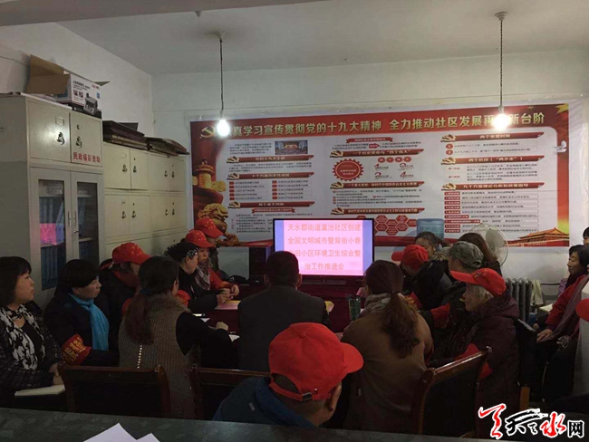 三是营造氛围抓宣传。社区充分利用微信公众平台、电子显示屏、宣传公示栏、拉条幅、摆放展板、设立咨询点、发放倡议书等方式,发挥“楼院巡查员小红帽”、“绿马夹“党员先锋行”等志愿者的积极作用,广泛开展创建文明城市宣传活动,向辖区居民群众、沿街门店、居民小区发放和张贴《天水市创建全国文明城市倡议书》、《天水市市民文明公约》和《天水市秦州区人民政府关于开展城区背街小巷老旧小区环境卫生综合整治工作的通告》。引导辖区各行各业、居民养成良好的卫生习惯,树立文明社区新风尚,使得“环境整治,人人有责”的意识深入人心。