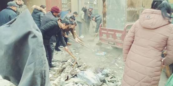天天天水网讯(通讯员 韩雪梅)为进一步提高辖区居民生活环境整洁性,推进背街小巷老旧小区治理,全力打造一个干净、整洁、优美的居住环境,2019年1月14日 ,瀛池社区干部以铁军精神,主动作为,组织辖区居民100余人在建行家属院开展乱堆乱放废弃物集中清理活动。