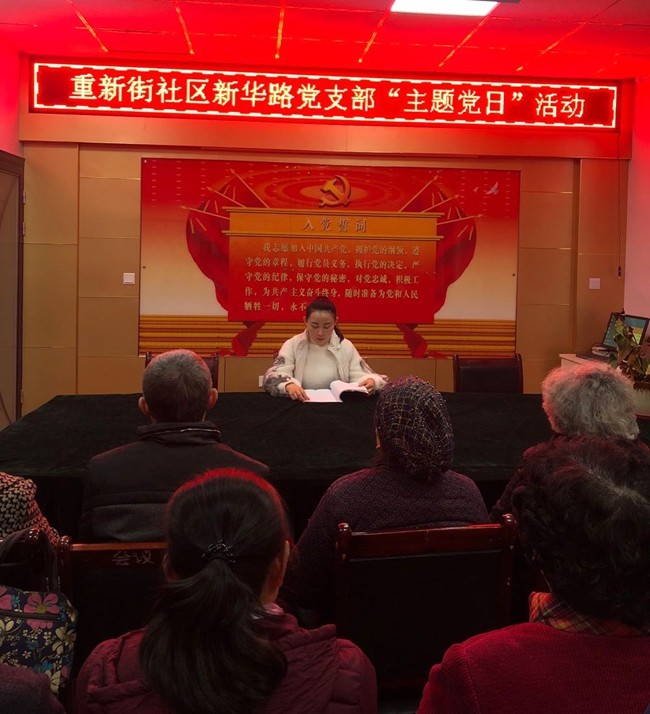 为使广大党员深刻领会《中国共产党支部工作条例(试行)》精神,全面掌握《条例》内容,促进各支部党建工作更好地发展,1月18日上午,中城街道重新街社区各个支部分别举办学习《中国共产党支部工作条例(试行)》主题党日活动,深入落实党要管党、从严治党要求,全面提升党支部组织力,强化党支部政治功能,充分发挥党支部战斗堡垒作用,推动《中国共产党支部工作条例(试行)》学习贯彻向基层延伸。