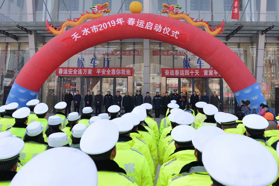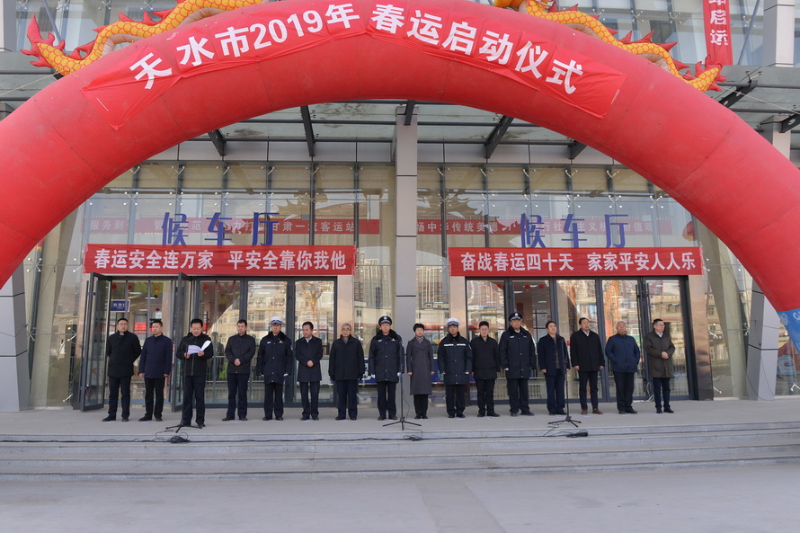 天天天水网讯 “春运安全连万家,平安出行你我他”。1月21日是全国2019年春运工作启动日,上午10时,天水市在汽车西客站举行全市2019年春运工作启动仪式。副市长、市公安局党委书记、局长马瑛宣布“天水市2019年春运启动”,标志着天水春运工作全面展开。