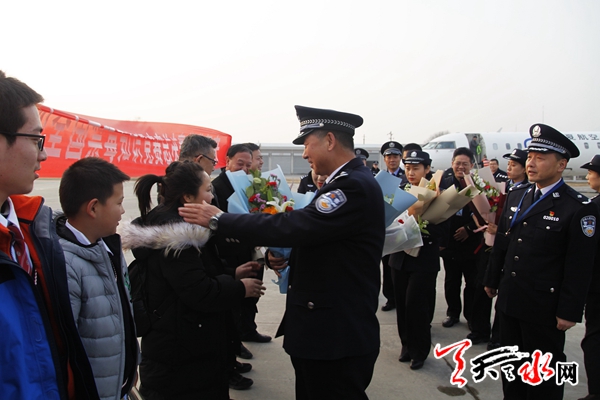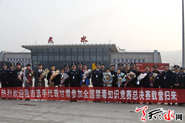 1月27日,6名选手载誉而归,天水市副市长、市禁毒委主任、市公安局局长马瑛带领市政府办、市公安局和秦州分局、甘谷县公安局,以及市、县区禁毒办有关人员到天水机场迎接,对小朋友们取得的好成绩表示祝贺,并勉励他们在今后的学习生活中争做禁毒宣传的小使者,把自己学到的禁毒知识传播给身边的每一个人,呼吁大家珍爱生命、远离毒品,共创“健康人生、绿色无毒”的美好家园。