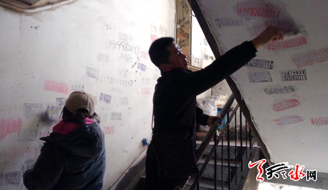 活动中,在社区工作人员的带领下,志愿者们团结起来深入到三无小区中,重点对楼道内乱堆乱放的垃圾杂物、墙上路面上的牛皮廯和小广告、房前屋后的生活资料及某些隐匿的垃圾堆进行了专项清理。现场劳动者们也是情绪高涨,齐心协力,不给垃圾杂物和小广告一丝一毫的生存空间。
