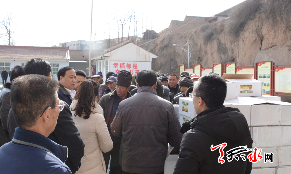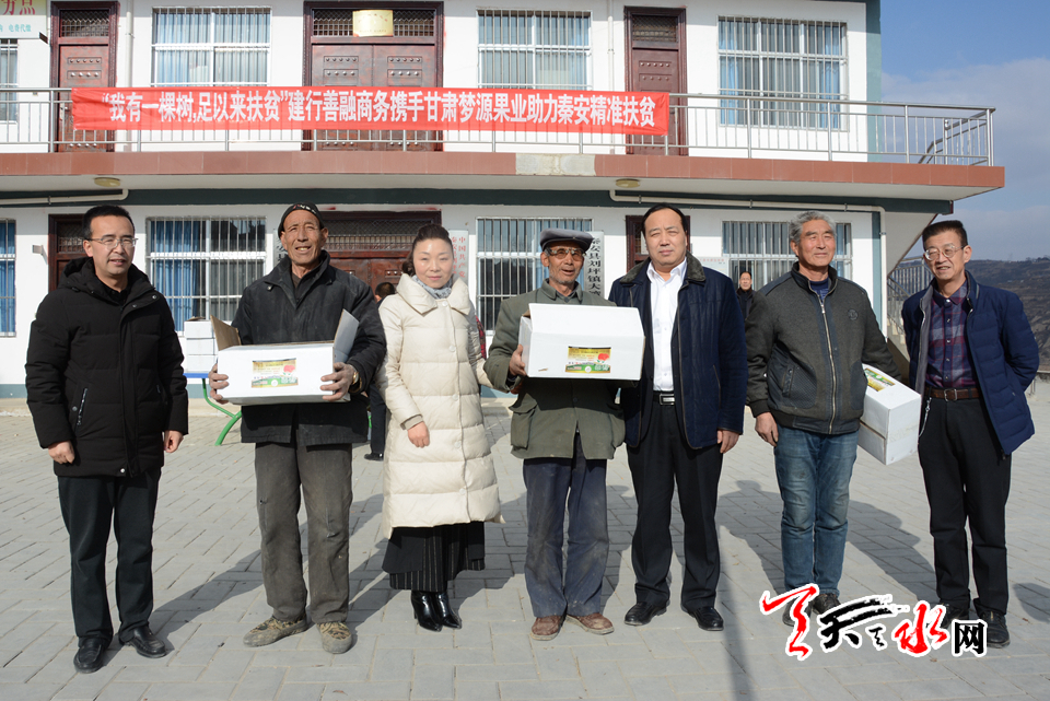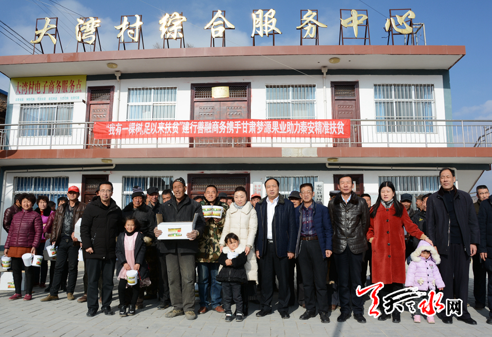 天天天水网讯(见习记者罗馨)2月1日,建行善融商务携手甘肃梦源果业助力秦安精准扶贫活动在刘坪镇大湾村开展。建设银行天水分行纪委书记李永福、办公室主任高伟萍,建设银行秦安支行行长李宏伟,秦安县农业农村局相关负责人,天水梦源果业负责人参加了活动。