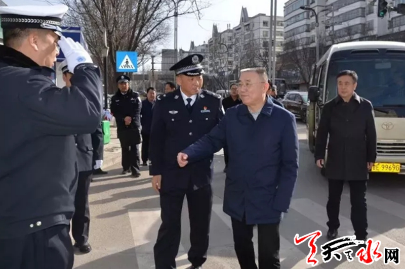 春节期间,天水市委书记王锐,市人大常委会主任、市委秘书长蒋晓强,副市长何东,副市长、市公安局党委书记、局长马瑛等市领导看望慰问一线执勤民警,向奋战在交管一线的交通民警致以节日的问候。