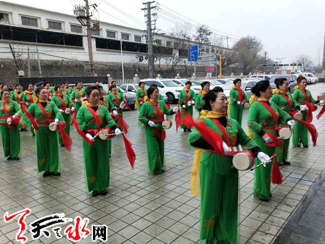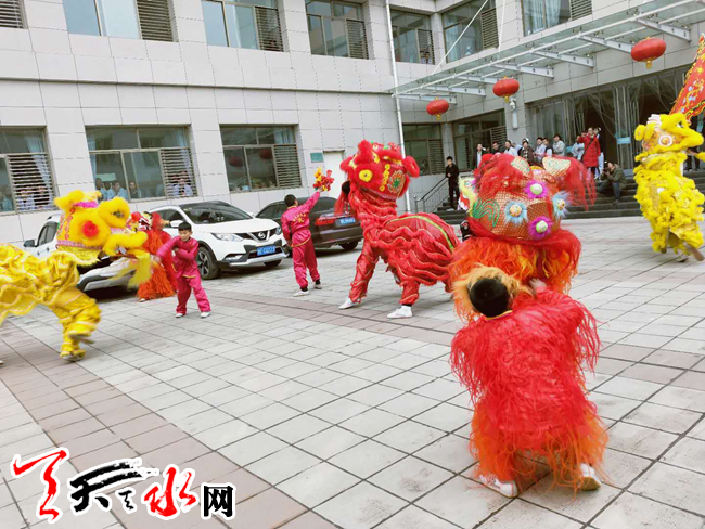 天天天水网讯(通讯员吴娟)2月14日上午9时,雪后的天水街上冰凉凉的,气温低至零下4摄氏度,还刮着剌骨的北风。在天水郡街道王家磨社区的精表路上却锣鼓喧天,一队由6架舞狮和30人的腰鼓队组成的拜年队伍走街串户,正在给辖区单位和居民们拜年。