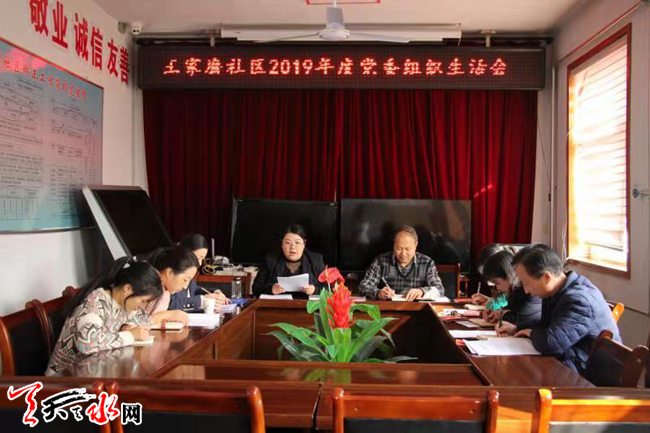 天天天水网讯(通讯员吴娟)按照区纪委机关、区委组织部《关于认真开好2018年度党员领导干部民主生活会的通知》要求,根据天水郡街道党工委的安排部署,王家磨社区党委在2019年2月21日下午召开了2018年度专题组织生活会。