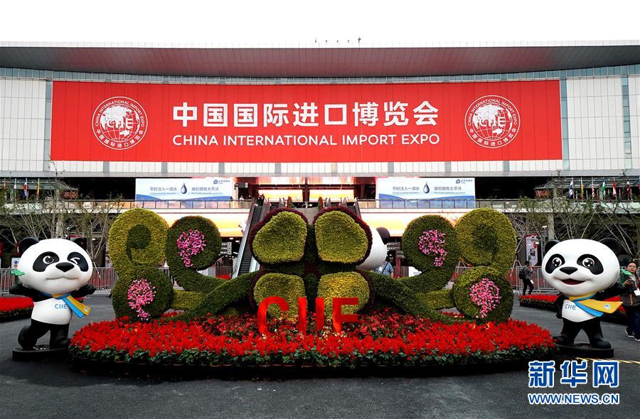 在国家会展中心(上海)场馆外,进博会吉祥物“进宝”准备迎接四方宾客(2018年11月4日摄)。 新华社记者 陈飞 摄