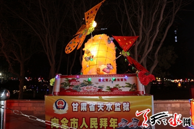 其中东关街道忠武巷社区的“花灯”,给今年的元宵节增添了不少色彩。由忠武巷社区辖区单位天水监狱制作的大座灯,以“教化育人,破茧重生”为主题,表达一只蝴蝶破茧重生、翩翩飞舞的美好寓意;由天水市住房公积金管理中心制作的“小猪官”,憨态可掬,“猪”光宝气,为人们恭贺新春,预祝大家猪年吉祥,万事如意;由天水市审计局制作的“天安门”,逼真形象,富丽堂皇,一侧五星红旗迎风招展,整个座灯象征着祖国繁荣昌盛,人民新福安康。三个大座灯,制作精美,寓意深刻,吸引了广大市民纷纷拍照留念。