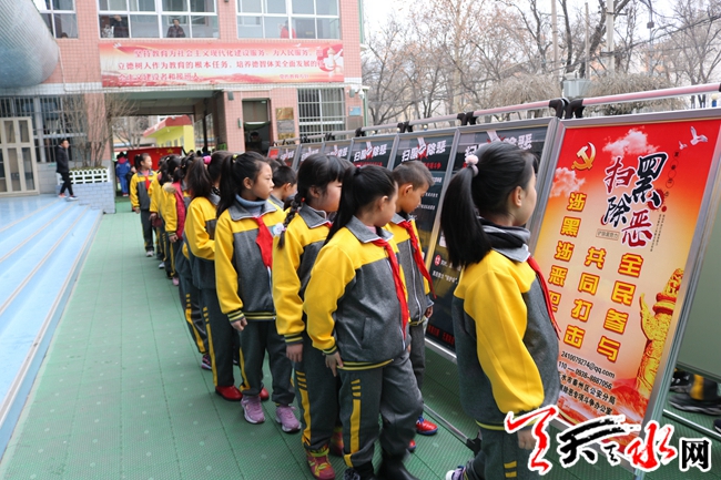 2月25日,又是一年开学季,在天水市建三小学校园内外,学生和家长熙熙攘攘,东关街道忠武巷社区抓住这一有利时机,对“扫黑除恶”专项斗争进行宣传。