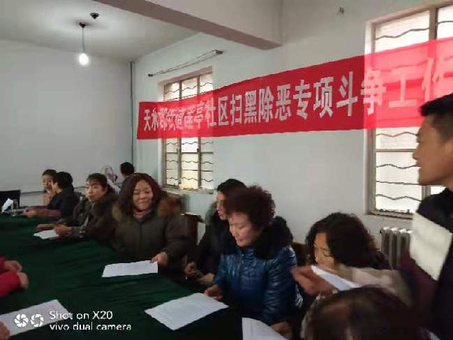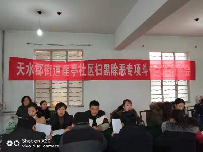 天天天水网讯 为了深入推进“扫黑除恶”专项斗争工作,2月22日下午天水郡街道莲亭社区组织社区干部、党员群众、居民小组长、网格员再次召开了扫黑除恶专项斗争工作推进会。