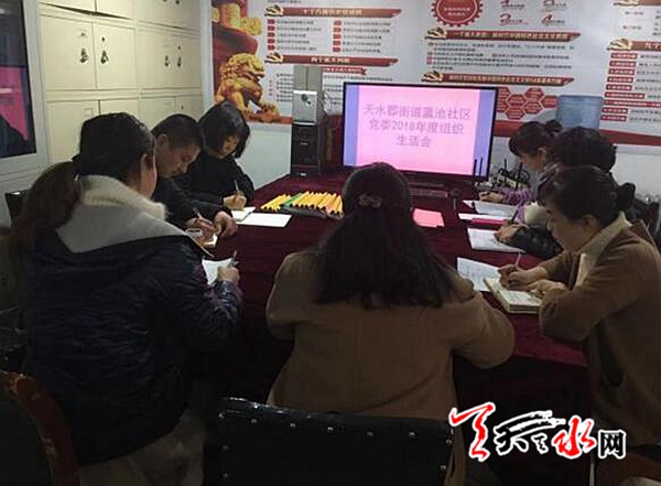 天天天水网讯(通讯员 韩雪梅)2月25日下午,天水郡街道瀛池社区党委召开2018年度组织生活会,会议由社区党委书记姚芳芹主持,分管领导赵双萍、社区党委委员参加了此次会议。
