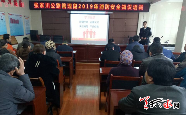 天天天水网讯(通讯员王小强 闫永强)为提高全段干部职工对消防安全工作的认识,进一步掌握消防安全知识,2月27日,张家川公路管理段邀请了兰州政安防火知识宣传中心的刘云鹏教官对56干部职工进行了消防安全知识培训。