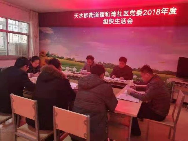 天天天水网讯 按照秦州区纪委机关、区委组织部的有关要求和街道党工委的统一安排部署。2月25日下午,天水郡街道暖和湾社区党委召开2018年度组织生活会,会议由暖和湾社区党委书记赵万江同志主持,街道武装部长马韬同志、社区党委成员参加会议。