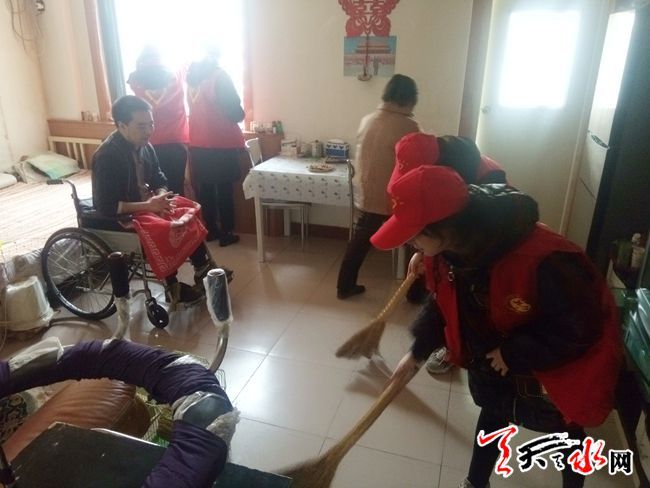 天天天水网讯(通讯员 闵萱)为了更好的学雷锋、树新风,发扬雷锋精神,践行志愿服务。3月4日上午,秦州区七里墩街道岷山社区组织学雷锋党员志愿服务队,来到岷山厂简易楼,义务为老人和残疾人理发、剪指甲、打扫卫生等。