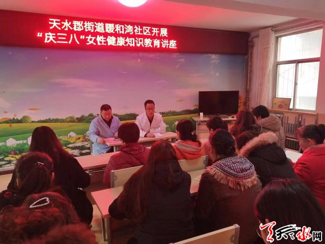 接着社区开展"庆三八"健康知识教育讲座及义诊活动邀请了社区卫生服务站于大夫讲解女性健康知识,从女性常见的一些妇科病到如何预防等知识,让在座的每位女同胞们受益匪浅,之后,医护人员携带了血压计、医用按摩仪等专业器材,为妇女进行听心肺、血压血糖测量、诊脉、脊椎腰椎按摩及健康咨询等服务。