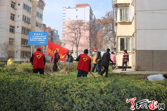 天天天水网讯(通讯员 闵萱)3月15日上午,秦州区七里墩街道岷山社区组织党员、志愿者、居民群众50余人,对辖区垃圾点、城市“牛皮癣”、绿化带、卫生死角等位置的垃圾杂物进行全面清理整治,通过开展本次活动,形成了党员带头、群众参与,共治共建的良好氛围,助力创建全国文明城市工作顺利开展。