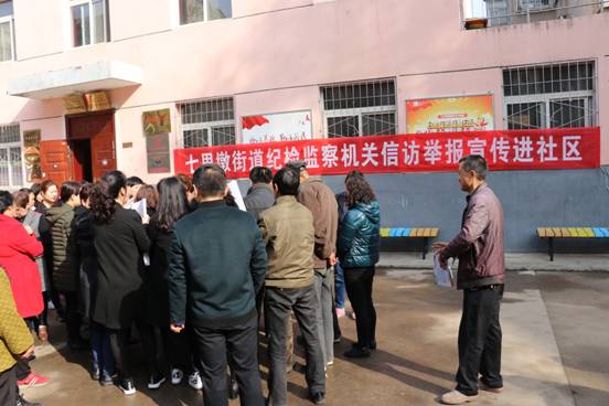 社区工作人员向过往群众发放了纪检监察信访举报宣传资料,接受了居民的现场咨询,同时组织工作人员入户走访,进行面对面宣传,就纪检监察信访举报工作基本任务及受理范围向群众进行了宣传讲解,为群众答疑释惑。
