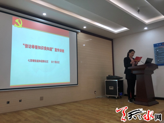 天天天水网讯【通讯员 董强强】为了向广大干部、群众普及纪检监察机关信访举报知识,扩大群众知晓度,充分发挥群众监督作用,3月20日上午,七里墩街道和谐路社区联合东十里社区在和谐家园开展“信访举报知识我知道”宣传周活动。
