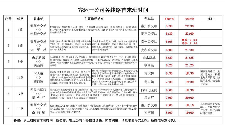 天水羲通公交旅游集团客运一公司各线路首末班时间