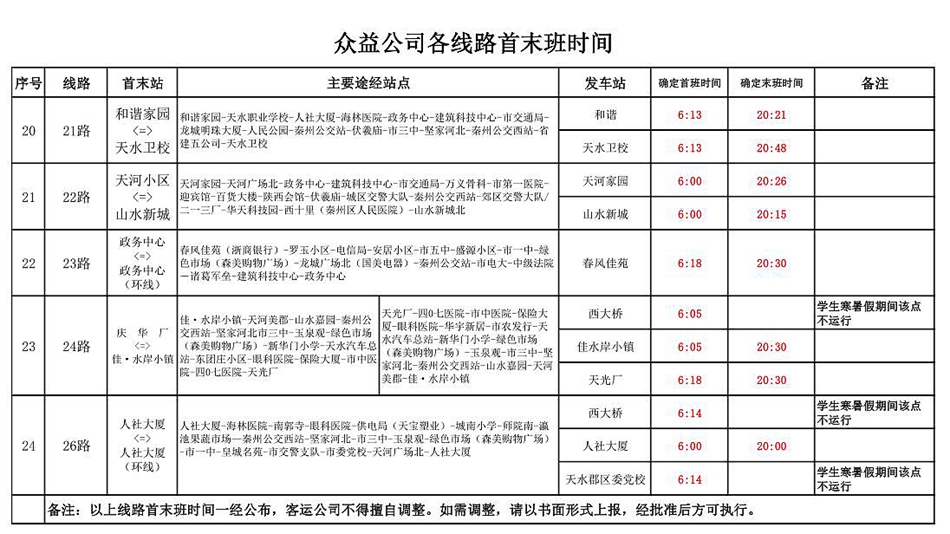 天水羲通公交旅游集团众益公司各线路首末班时间
