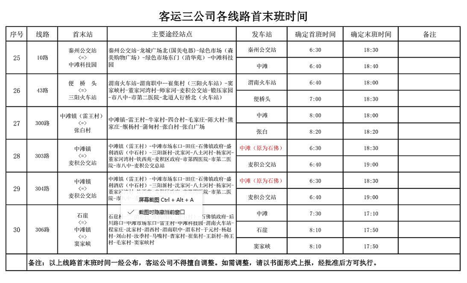 天水羲通公交旅游集团客运三公司各线路首末班时间