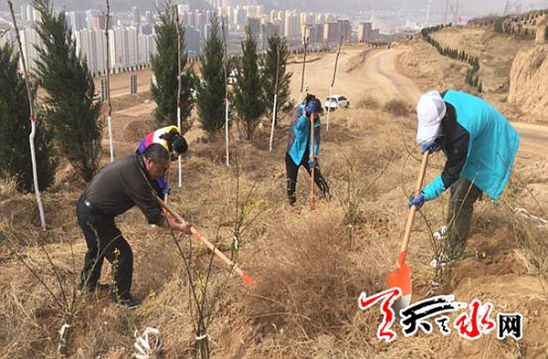 天天天水网讯(通讯员惠晓荣)3月22日上午,为了积极响应全民义务植树号召,社区全体干部和党员志愿者在中城街道办事处的统一组织下开展义务植树活动。