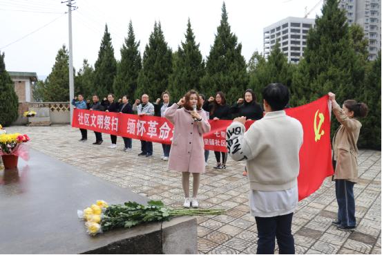 在纪念仪式上,大家整齐列队,重温入党誓词;肃立默哀,追思人民英雄奋勇抗争的丰功伟绩;虔诚地三鞠躬,献上鲜花,用简朴庄重的礼节寄托对先烈的哀思和崇敬之情。社区工作人员趁此机会,引导社区居民转变传统的思想观念,发扬中华民族勤俭节约的优良传统,树立科学的祭祀观以及文明、安全的公德意识,突出生态、环保、低碳理念。
