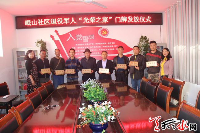 天天天水网【通讯员 闵萱】为进一步发扬拥军优属的光荣传统,彰显军人的社会政治地位和荣誉感。近日,秦州区七里墩街道岷山社区在一楼会议室举行了退役军人“光荣之家”门牌发放仪式,并为五户光荣退伍军人发放悬挂“光荣之家”牌,以此表示对他们崇高的敬意。