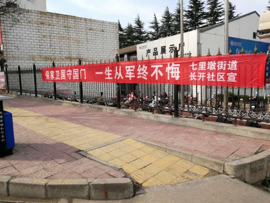 天天天水网讯(通讯员梁昇)自古英雄多壮志,驰骋沙场建功勋,鼓励有品德,有素质,有文化的优秀青年踊跃参军入伍,依法服兵役是每名适龄青年应尽的光荣义务,关心和支持国防事业是全社会的共同责任。为确保2019年征兵工作顺利开展,七里墩街道长开社区在辖区开展以“青春风华正茂 热血男儿精诚报国”为主题的征兵宣传工作。