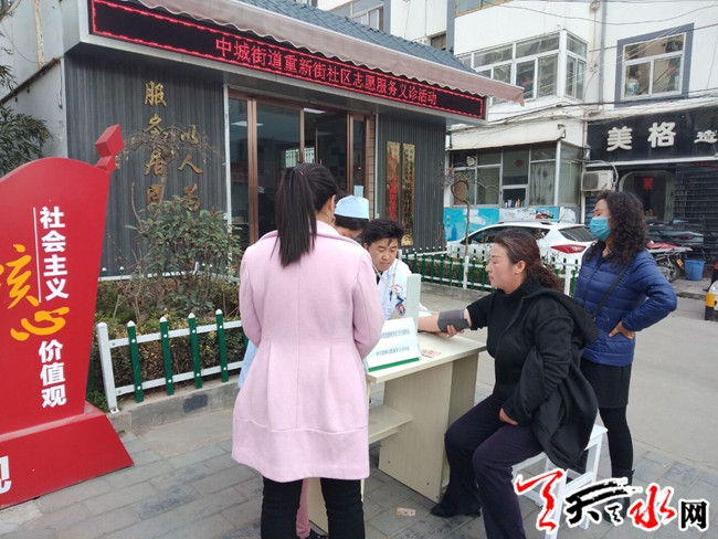 天天天水网讯(通讯员 刘芸芳)为了提高社区居民的健康意识,自我保健意识,重新街社区“大党委”积极打造以“党旗飘扬、共驻共建、资源整合、和谐发展”为目标,党建与社区治理相融合的工作机制及不断构建社区党组织领导下的多元共建工作新格局下,4月10日联系社区服务所张院长和田大夫组织开展了“党旗飘扬 健康义诊”活动。