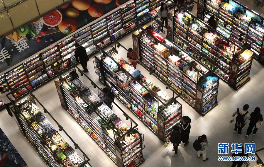 消费者在上海市虹桥路上的一家超市采购食品(4月15日摄)。新华社记者 陈飞 摄