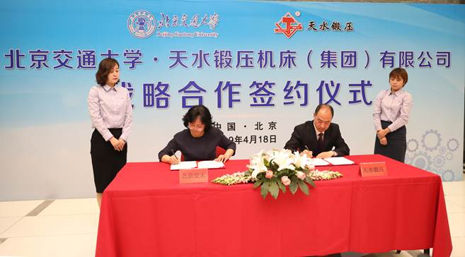 天天天水网讯【记者姬旺芳】4月18日,北京交通大学与天水锻压机床(集团)有限公司在北京举行战略合作签约仪式。双方将在人才培养、项目合作、科技研发、实验室共建、职工和师资培训等方面进行长期深度合作。