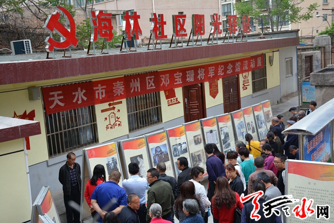天天天水网讯【通讯员 于亚江】为传承和弘扬以爱国主义为核心的民族精神,进一步践行社会主义核心价值观,4月26日早上,七里墩街道海林社区联合邓宝珊将军纪念馆在阳光驿站举办“爱国主义教育图片展进社区”活动。此次活动共有社区干部、党员代表、辖区居民80余人参加。