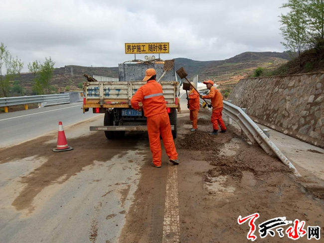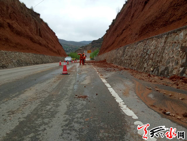 灾情发生后,张家川公路段及时启动防汛抢险应急专项预案,第一时间组织人员和机械赶赴灾害现场,一面设置警示标志提醒过往车辆减速慢行,一面组织人员和机械对塌方和泥石流进行了清理,消除了泥石流和塌方给公路交通带来的影响。