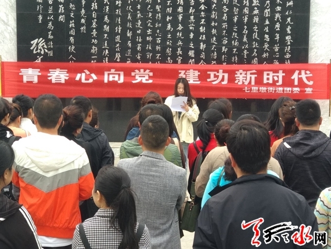 天天天水网讯【通讯员 何雯】为纪念五四运动100周年,进一步弘扬“爱国、进步、民主、科学”的五四精神,4月30日上午,七里墩街道海林社区组织辖区青年志愿者在邓宝珊将军纪念馆隆重举行“青春心向党 建功新时代”主题活动。