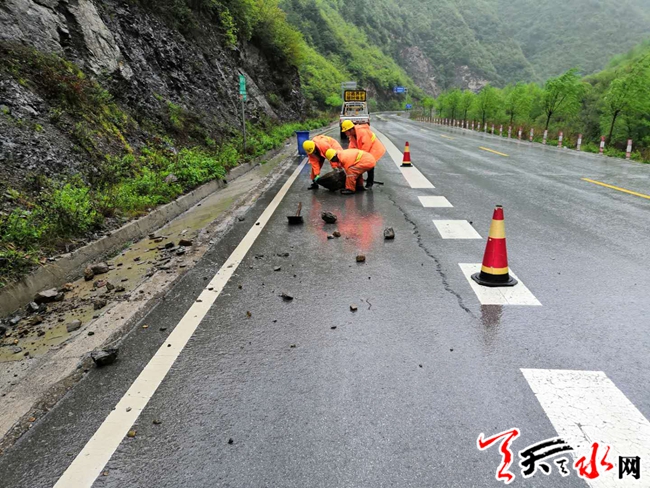 天天天水网讯(通讯员 刘志伟)连日来,受连续性降雨影响,省道208线洛礼路部分靠山路段山体出现松散,落石较多。为确保道路安全畅通,武山段加强省道208线的巡查力度。5月6日清晨,武山公路段洛门站职工在上路巡查时,发现S208线洛礼路有三处山体塌方落石,对过往车辆的通行造成极大不便,武山段立即组织人员机械赶赴现场,对塌方落石路段进行清理。经过1个多小时不懈努力,路面落石被彻底清除,确保了道路出行安全畅通。