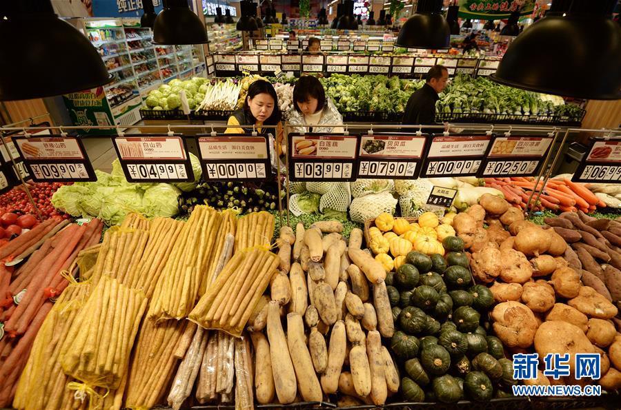 4月11日,顾客在河北省邯郸市峰峰矿区一家超市选购蔬菜。当日,国家统计局发布数据,3月份,全国居民消费价格(CPI)同比上涨2.3%。一季度,全国居民消费价格总水平比去年同期上涨1.8%。 新华社发(郝群英 摄)