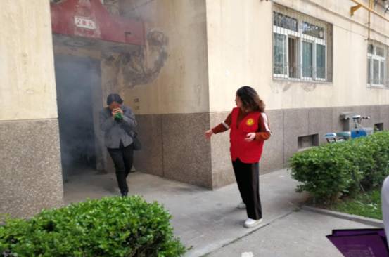 活动分为实地灭火和长城中学防震减灾演练两个阶段进行。演练开始前,首先由总指挥介绍了本次演练的目的、流程,讲解了消防减灾工作的意义及重要性。伴随着手摇警报器的拉响,指挥员正式宣布“各人员就位,开始演练”。楼栋引导员负责整顿集结居民,查看清点是否有遗漏人员,然后快速有序地指导志愿者队伍和社区居民按照疏散方案的既定路线向附近的开阔地进行了疏散撤离。在疏散撤离时,医护人员对小区居民进行了自救、互救指导,消防志愿者为小区居民现场演示了灭火器的使用方法,并指导居民代表进行了现场灭火,在整个演练过程中,居民群众未发生推搡、拥挤、抢先的情况,所有人员都做到了安全有序的撤离。