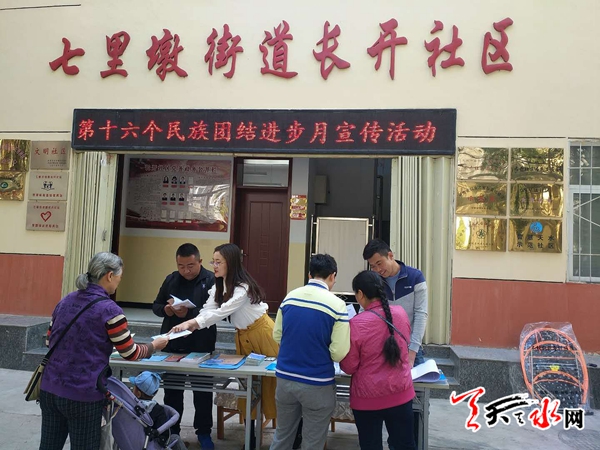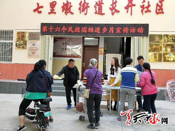 天天天水网讯(通讯员 缑文婷) 为增强广大群众对巩固和发展平等、团结、互助、和谐的新型社会主义民族关系的意识,推动辖区和谐发展。长开社区深入贯彻民族团结宣传月活动的精神,认真安排,在群众中开展了民族团结进步宣传月活动。