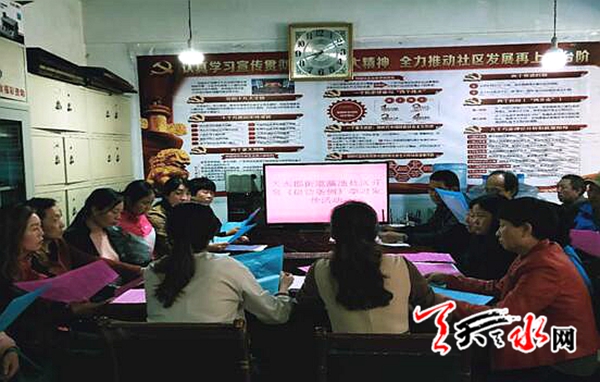 天水郡街道瀛池社区党委书记组织社区干部在瀛池社区会议室认真学习《信访条例》,对《信访条列》中信访所指的内容开展了全面学习。定期排查和研究分析群众来访中的各种不稳定因素,超前防患,妥善处理,坚持“及时就地解决与做好思想疏导教育相结合的原则”,要求大家认真落实信访工作的各项制度,营造了浓厚的信访宣传氛围。