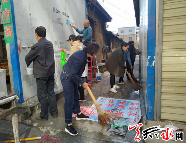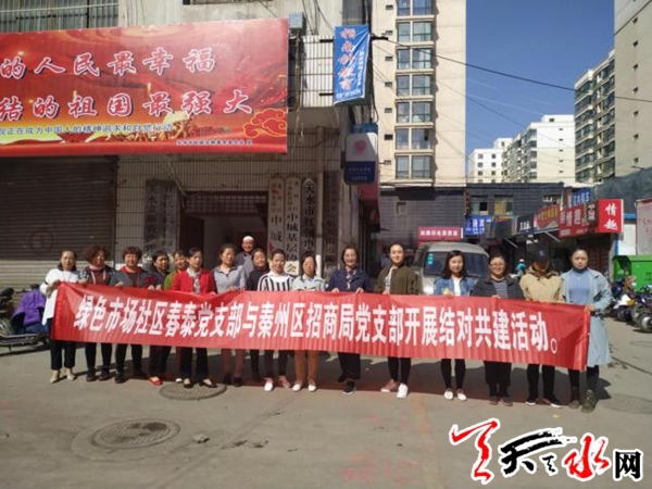 天天天水网讯【通讯员 张彬】5月10日,秦州区中城街道绿色市场社区春泰党支部与区招商局结对共建,依托“主题党日”开展扫黑除恶专项斗争工作的宣传和“三无小区”卫生整治清理活动。