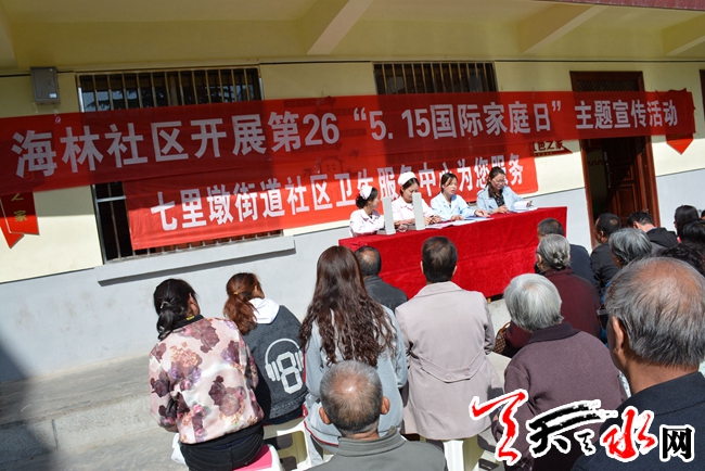 天天天水网讯【通讯员 胡春兰】5.15国际家庭日来临之际,秦州区七里墩街道海林社区开展了以“健康是幸福的保障”为主题的健康知识宣传活动。