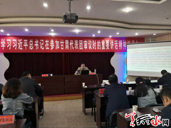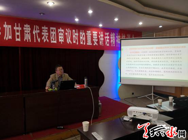 候老师精心备课,从三个方面进行了系统的讲解:一是充分认识习总书记重要讲话对新时代甘肃发展的重大意义;二是深刻领会习总书记重要讲话的丰富内涵和精神实质;三是以实际行动贯彻落实习总书记重要讲话精神。讲解内容丰富、主题鲜明、重点突出,得到了参会党员的一致好评。