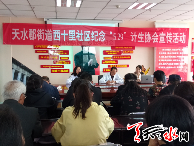 天天天水网讯(通讯员汪文惠)在"5.29"计生协会活动日即将来临之际,5月14日下午,天水郡街道西十里社区计生协、妇联邀请天水新天坛医院陈根元院长、内科主任张永瑞开展健康知识讲座,现场以讲解传授、互动咨询、发放宣传册的形式,将最新的医疗信息、慢性病预防和保健知识传递给会员和居民朋友。