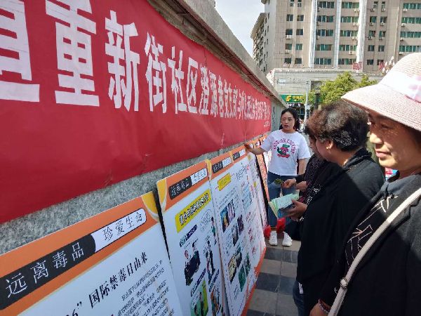天天天水网讯(通讯员 刘芸芳)为了进一步加大禁毒宣传力度,使广大居民群众远离毒品危害。5月20日下午,中城街道重新街社区在龙城广场 “开展禁毒宣传教育,助力社区平安建设”为主题的禁毒宣传活动。